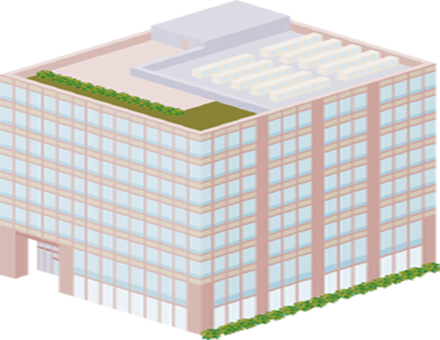 既設のテナントビルの躯体のみを残し、内側をすべて撤去し、新しくリハビリテーション病院に作り変える